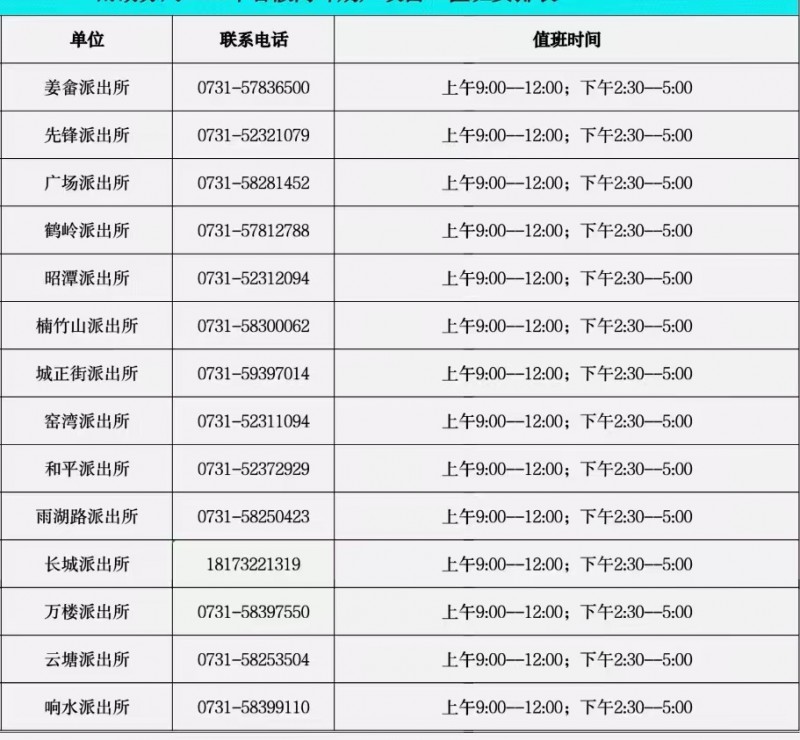 湘潭市雨湖区各个派出所户政窗口联系电话如下: