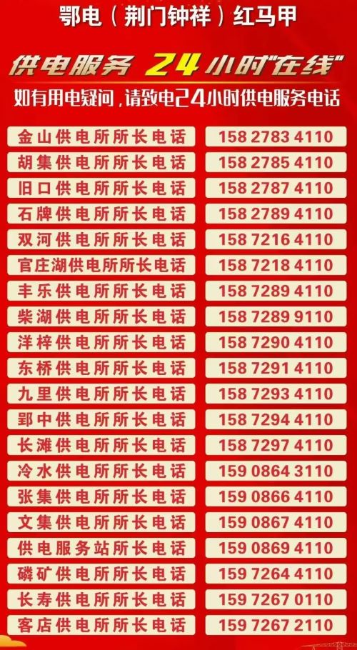 钟祥市供电公司各供电所24小时服务电话大全如下: