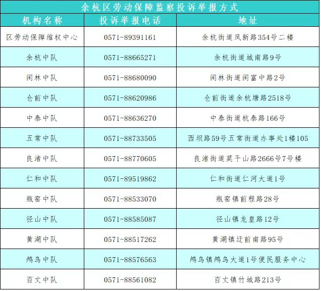 如有欠薪投诉请拨打杭州市余杭区劳动保障监察投诉举报热线电话