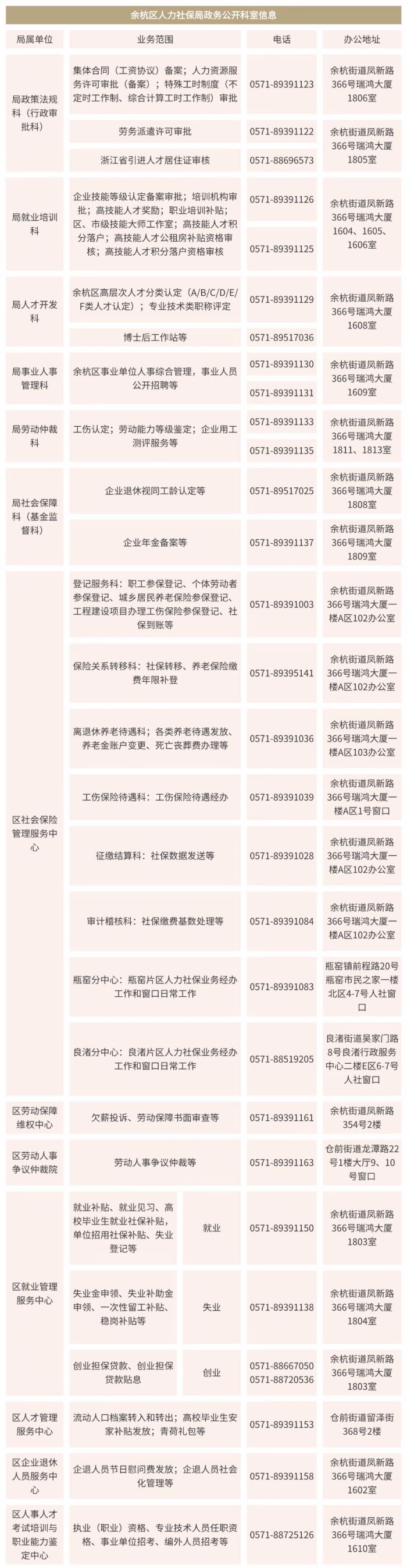 说明:关于杭州市余杭区人力社保局业务科室热线电话的信息仅供参考。