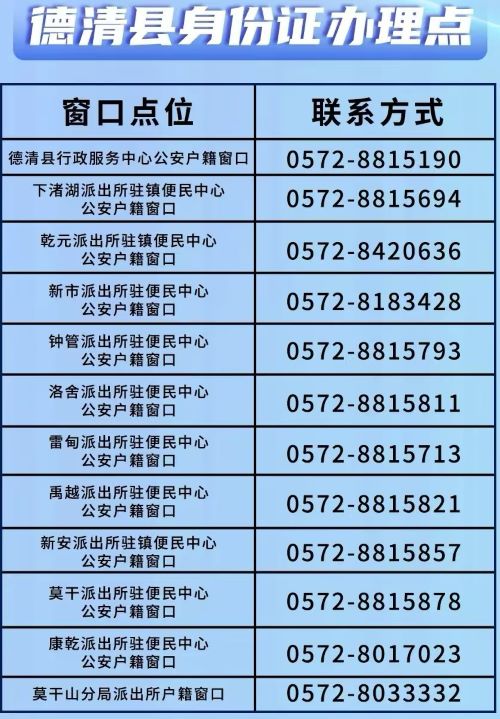 湖州德清县行政服务中心和各辖区派出所户籍窗口身份证办理地址及电话信息表