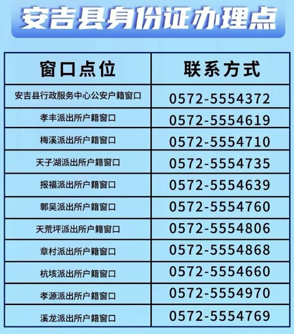 湖州市安吉县行政服务中心户政窗口和辖区派出所户籍窗口身份证办理地址及电话信息表
