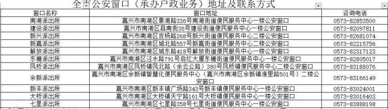 嘉兴市南湖区户政窗口(承办户籍身份证等业务)地址及咨询电话: