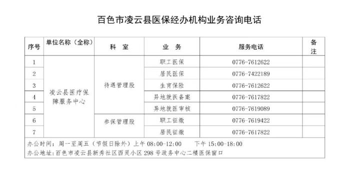 百色市凌云县医保经办机构各类业务咨询电话