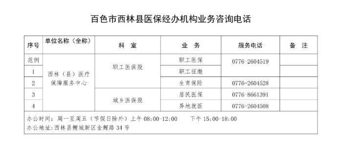 百色市西林县医保经办机构各类业务咨询电话