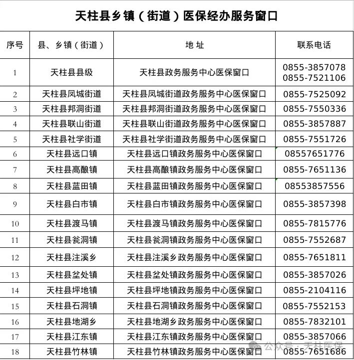 天柱县医保办事-天柱县乡镇(街道)医保经办服务窗口地址和联系电话
