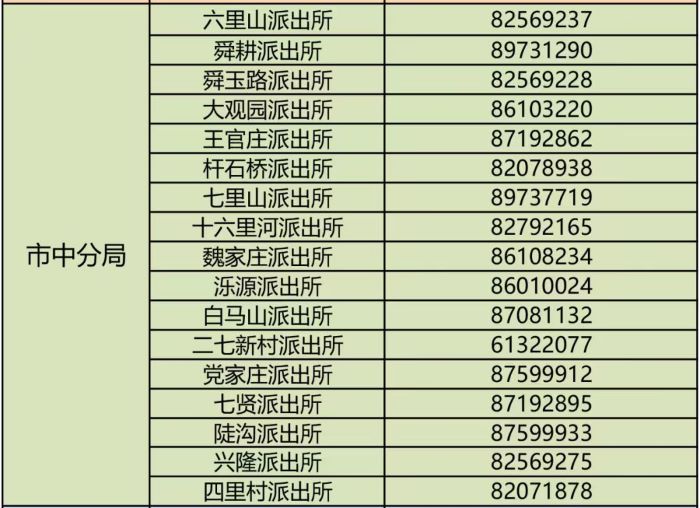 济南市市中区辖区各派出所户政(户籍身份证等)窗口咨询电话: