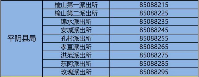 济南市平阴县辖区各派出所户政(户籍身份证等)窗口咨询电话: