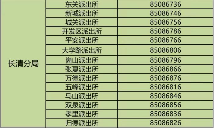 济南市长清区辖区各派出所户政(户籍身份证等)窗口咨询电话: