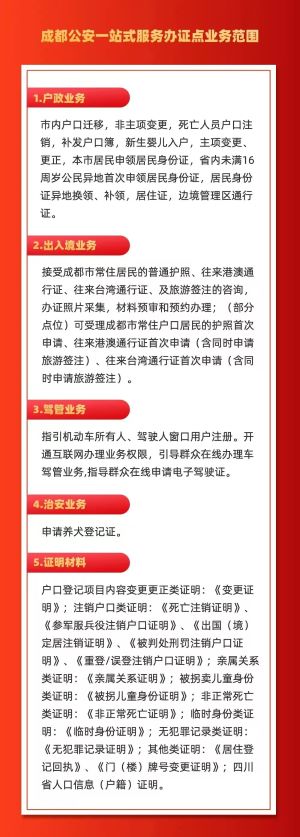 成都市各派出所一站式办证服务点业务范围如下: