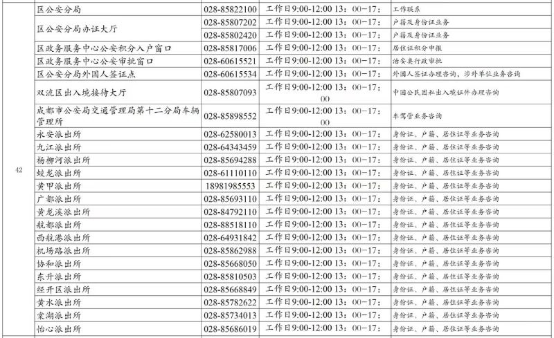 提示:关于成都市双流区户政咨询电话和各派出所身份证户籍居住证等业务咨询电话的信息作出特别说明:本信息立足为社会大众提供有价值的参考资料和办事指南等公共信息,部分图文来源于网络或者有关机构公开内容,属于公益性的分享与传播。虽然尽力确保内容的准确性和实效性,但由于各种因素,难免存在疏忽和差错,敬请不吝赐教,欢迎相互交流,共同学习。对信息中陈述、观点判断保持中立,版权属原作者所有,如涉侵权或者差错等问题,请联系网络信息推广平台秋果黄页网客服(187/8199/3958微信同号),一定会及时删除或者修正。谢谢!