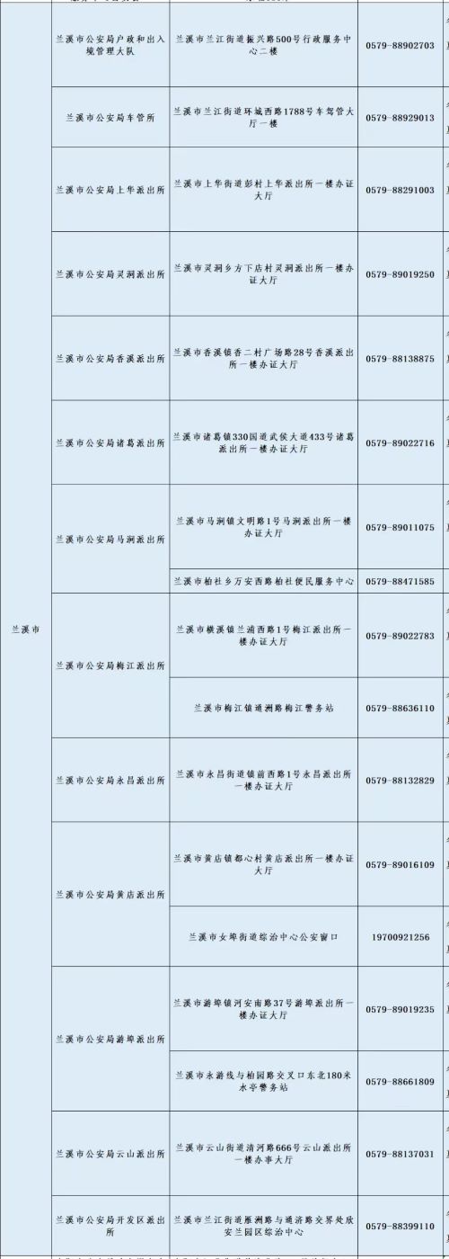 金华兰溪市户政大队和各派出所户籍窗口地址及联系电话: