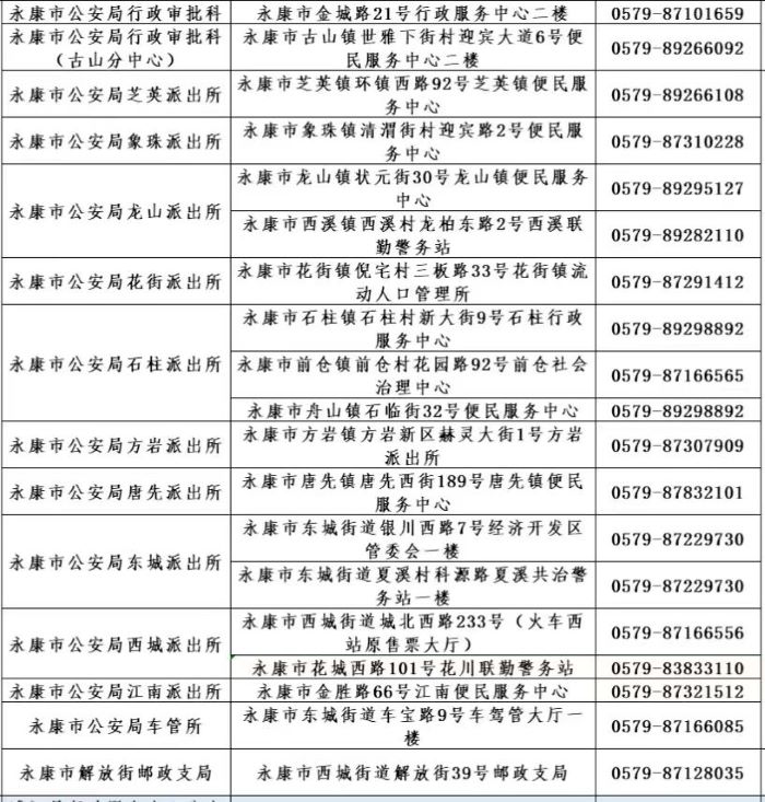金华市户政窗口(金华各区、市、县办证大厅和派出所户政窗口地址及电话)信息大全