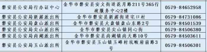 金华市磐安县行政办证中心和各派出所户籍窗口地址及联系电话:
