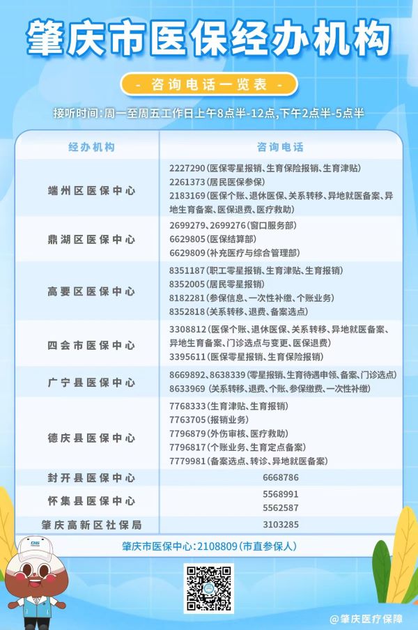 说明:关于肇庆市医保热线(各区、市、县医保经办机构咨询电话)一览表的信息作出特别说明:本信息立足为社会大众提供有价值的参考资料和办事指南等公共信息,部分图文来源于网络或者有关机构公开内容,属于公益性的分享与传播。虽然尽力确保内容的准确性和实效性,但由于各种因素,难免存在疏忽和差错,敬请不吝赐教,欢迎相互交流,共同学习。对信息中陈述、观点判断保持中立,版权属原作者所有,如涉侵权或者差错等问题,请联系网络信息推广平台秋果黄页网客服(187/8199/3958微信同号),一定会及时删除或者修正。谢谢!
