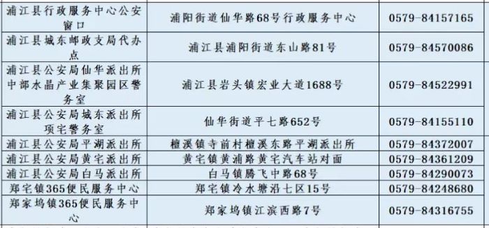 浦江县行政服务中心户政窗口和派出所户籍窗口办理身份证地点和咨询电话: