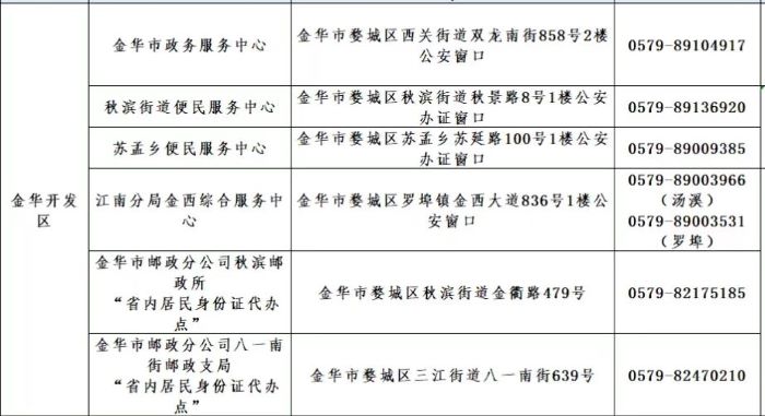 金华市金华开发区辖区内身份证办理点有哪些,户籍身份证办证咨询电话是多少: