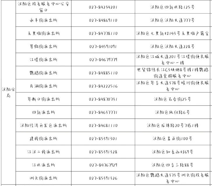 武汉市汉阳区江北派出所户籍窗口地址:汉阳区四台三路88号,咨询电话:027-84767929