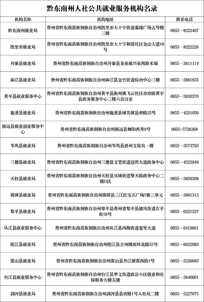 黔东南州全州辖区各级人社公共就业服务机构地址和联系电话大全: