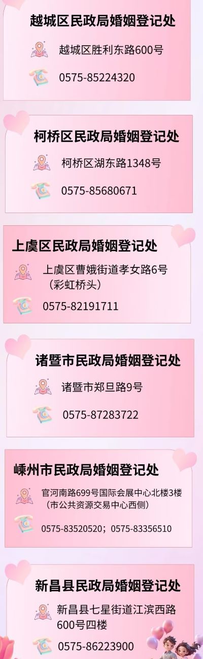 绍兴市全市各级民政局婚姻登记地址及咨询电话