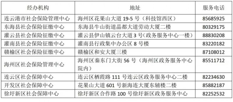 市、县(区)人社综合服务大厅、基层服务平台。连云港市各县区社保经办机构地址及服务电话如下。