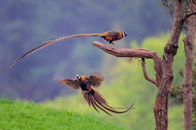 白冠长尾雉可不止只有美丽的外表,它的听觉和视觉都非常敏锐,稍有动静就会立刻逃离,展现出善奔跑、善飞翔的身姿。它们的飞行能力强而持久,特别是从高处向下滑翔时极为迅速,还能直接向上飞行较长距离。