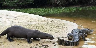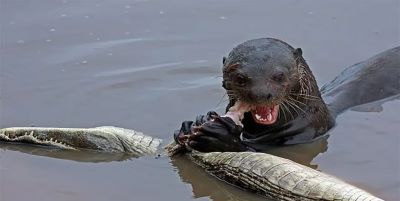 在亚马逊雨林中,巨獭最喜欢捕食的猎物之一就是鳄鱼。对巨獭来说,鳄鱼不仅体型大,捕获一头能吃好几天,而且击杀鳄鱼后,还能减少狩猎对手,可谓一举两得。