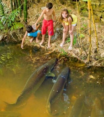 巨骨舌鱼的原生环境主要在南美洲的河流中,20世纪末被引入东南亚,体型巨大,在吉尼斯中所记录的最大一条长达3米,重460斤,也是世界上最大的淡水鱼之一。这种鱼的寿命大概在15年左右,4年以上达到成熟。