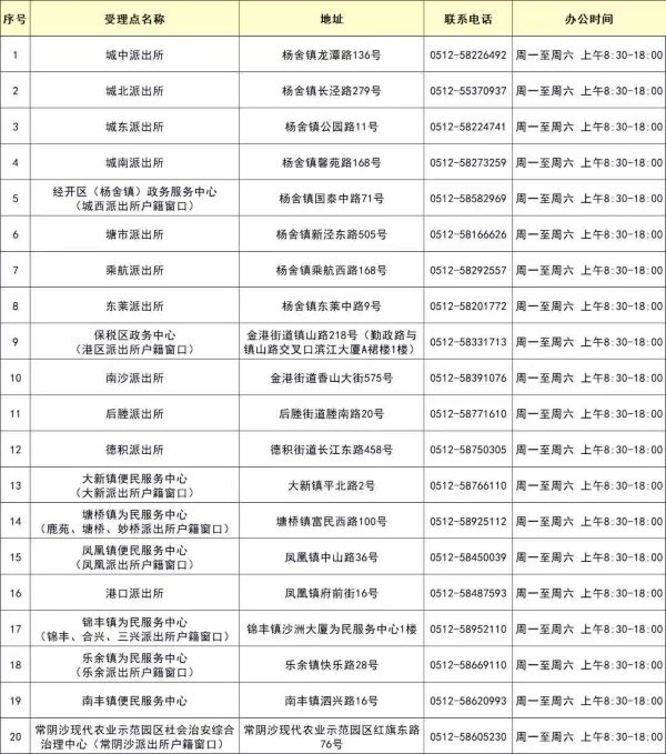 服务窗口:张家港市全市户籍、居民身份证业务受理点