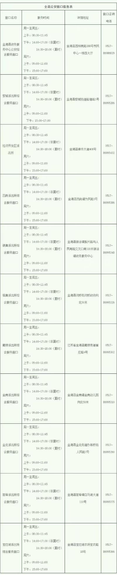 为持续深化窗口综合服务改革,进一步提升便民利企服务质效,金湖县全力打造政务服务中心综合服务窗口和10家派出所综合服务窗口,全面整合业务,实现业务“一窗通办”。金湖县政务服务中心户政和派出所综合服务窗口地址和咨询电话如下: