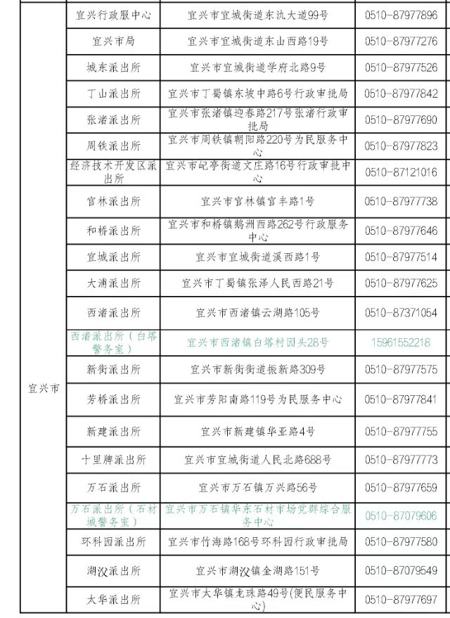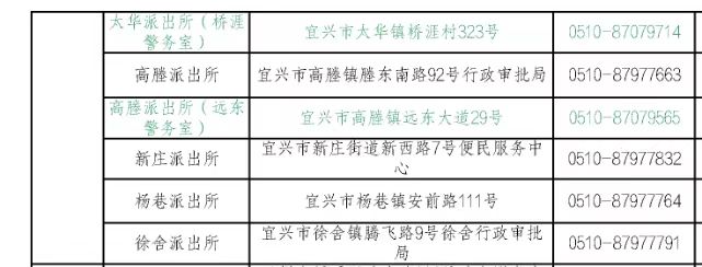 宜兴市局户政窗口:宜兴市宜城街道东山西路19号,电话:0510-87977276