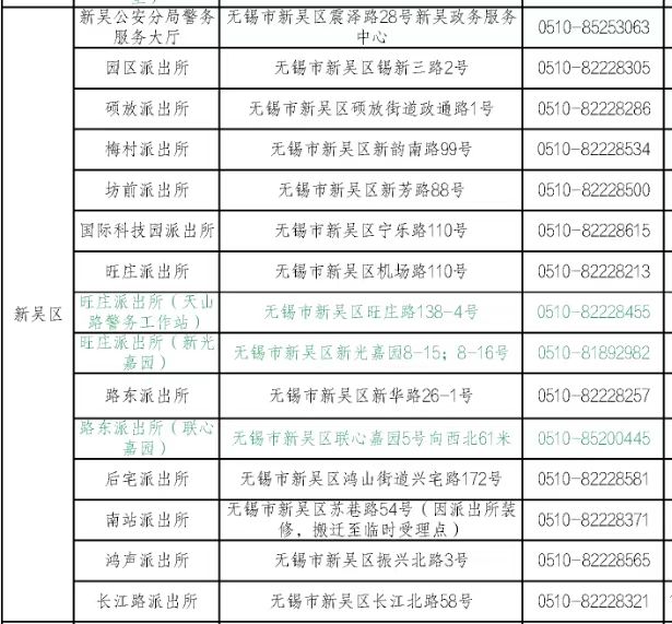 江苏无锡市新吴区政务服务中心户政窗口和各派出所户籍窗口身份证受理点地址和咨询电话
