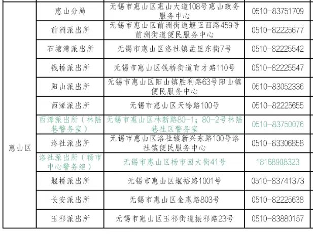 江苏无锡市锡山区各派出所户籍窗口身份证受理点地址和咨询电话