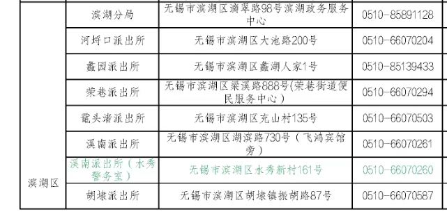 江苏无锡市滨湖区政务服务中心户政窗口和各派出所户籍窗口身份证受理点地址和咨询电话