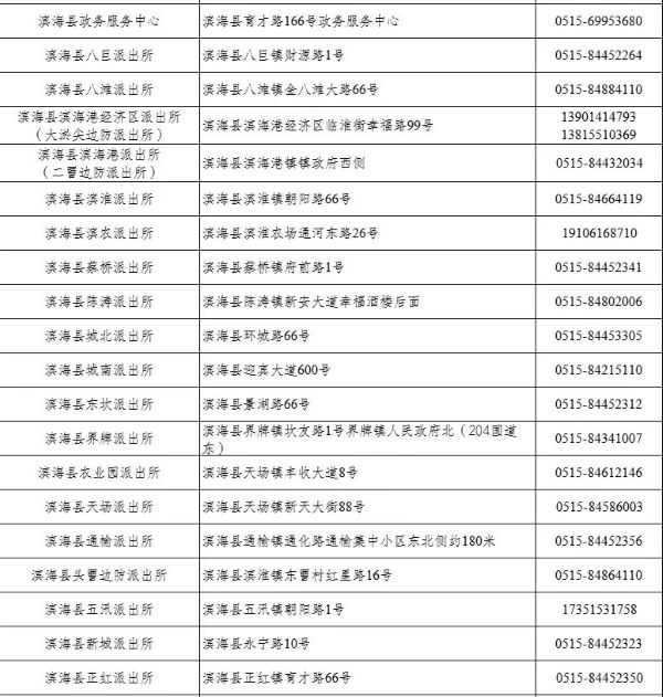 盐城市滨海县政务服务中心户政窗口和辖区派出所户籍窗口身份证办理地址及咨询电话