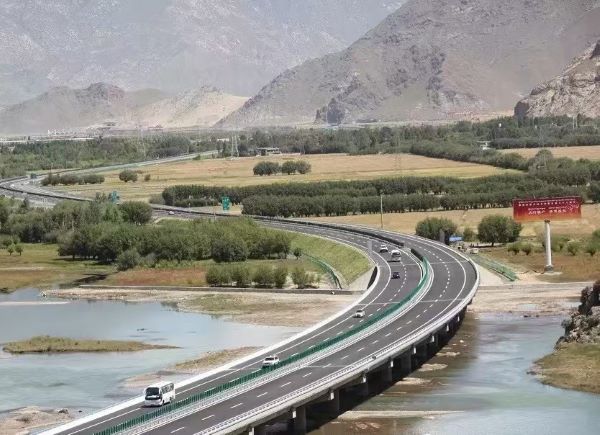 机场高速公路融入藏族文化元素设计,体现了藏族独特风情,通过沿线藏区民居建筑、民俗风情等藏文化元素,实现公路与沿线自然环境相融合,使生态文明和西藏特色文化有机结合。
