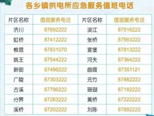 泰兴市供电公司各乡镇供电所应急服务值班电话:
