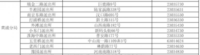 上海市黄浦区各派出所办理户籍身份证业务地址和联系电话
