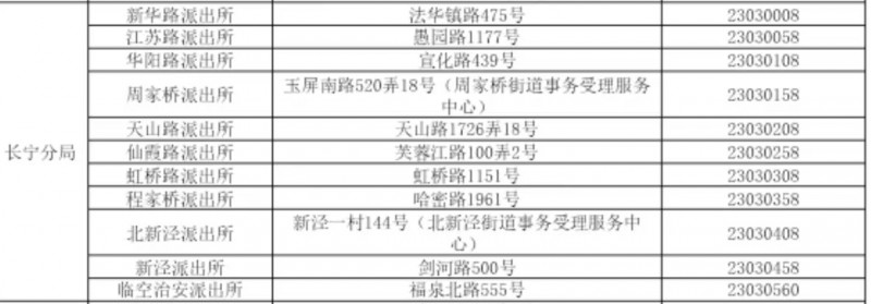 上海市长宁区各派出所窗口办理户籍身份证业务地址和联系电话: