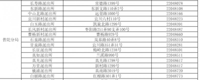 上海市普陀区各基层派出所服务窗口户籍身份证业务地址和联系电话