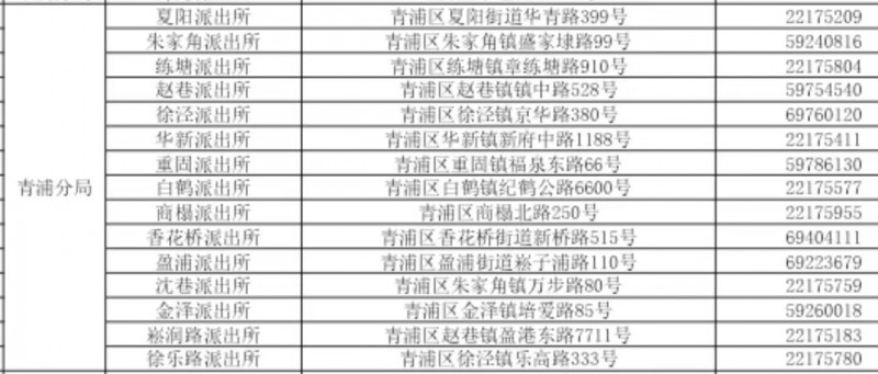 上海市青浦区各派出所户政窗口办理户籍身份证地址和服务电话