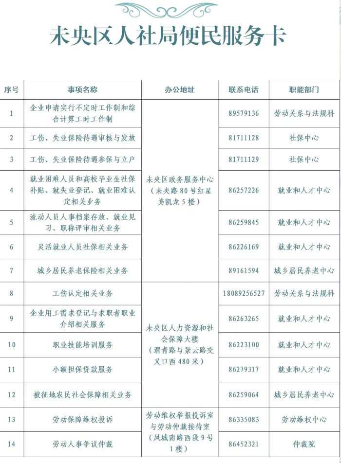 西安市未央区人力资源和社会保障局便民服务电话号码:为进一步方便辖区企业和群众咨询、办理人社业务精准、高效享受服务聚焦就业创业、社会保障、劳动维权等高频事项细化、更新了服务电话及办事地址现予以公告。
