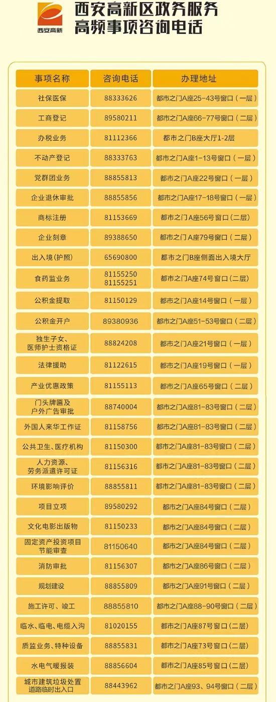说明:关于西安市高新区政务服务高频事项咨询热线电话的信息仅供参考。