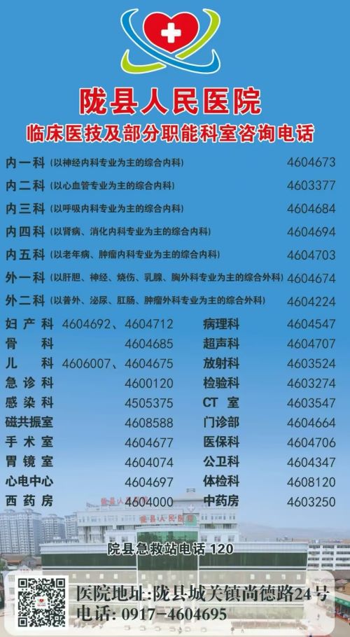 陇县人民医院应急值班电话:0917-4604714