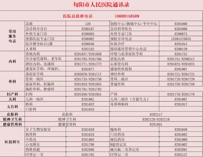 说明:关于旬阳市人民医院业务科室电话通讯录的信息仅供参考。