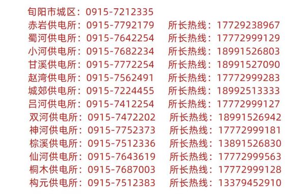 说明:关于便民电话之旬阳市供电公司各供电所服务热线大全的信息仅供参考。
