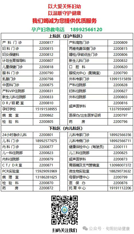 说明:关于旬阳市妇幼保健院上院区和下院区业务科室电话大全的信息仅供参考。