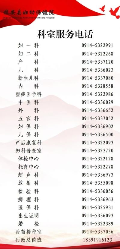 说明:关于镇安县妇幼保健院科室医疗服务电话大全的信息仅供参考。