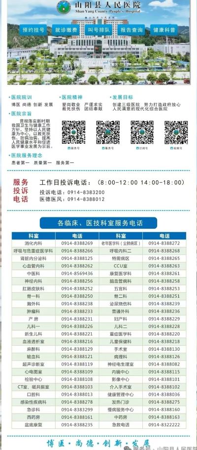 说明:关于山阳县人民医院各临床和医技科室服务电话大全的信息仅供参考。