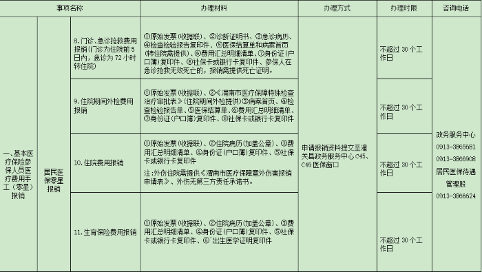 潼关县医疗保障业务经办服务事项清单之城乡居民医保零星报销
